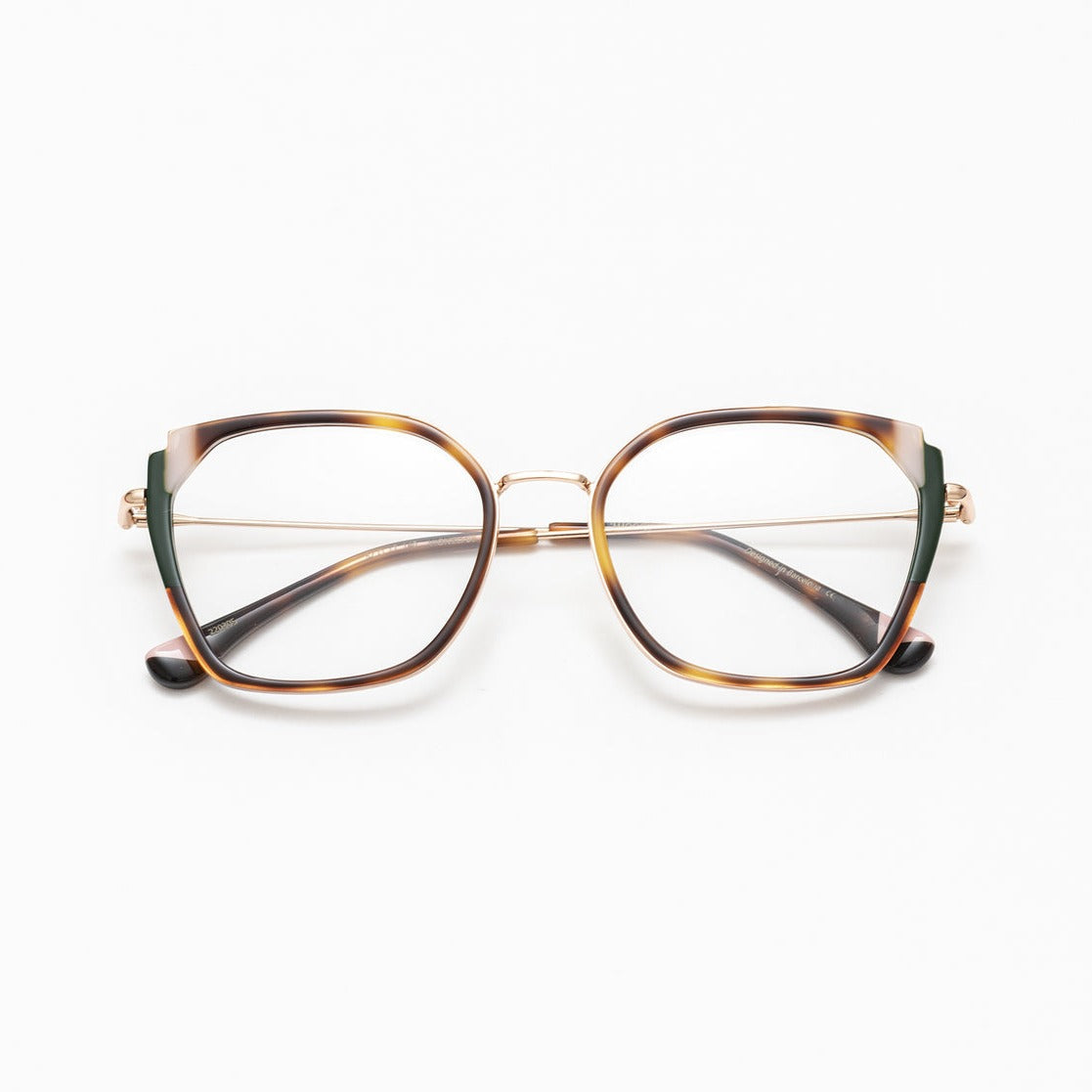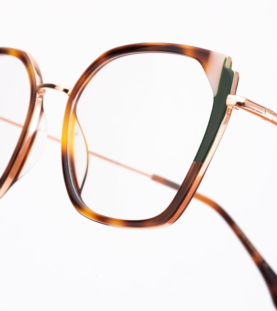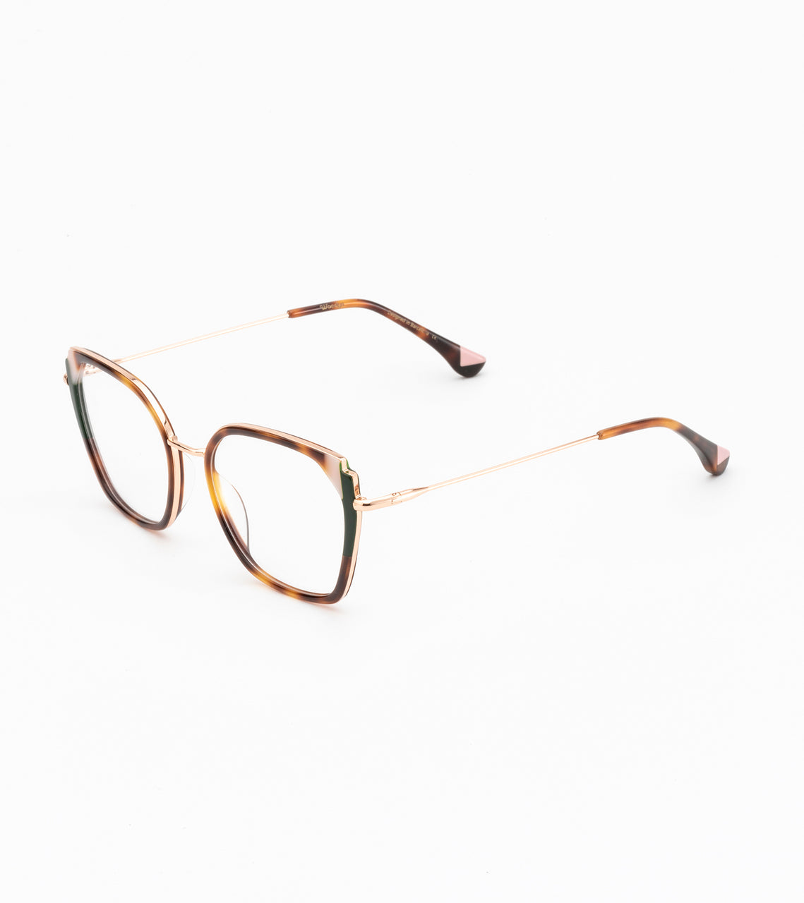 Montatura in metallo oro con oculare in acetato tartarugato.